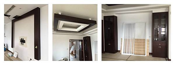 (左)客廳原有電視牆 (中)用餐區原有天花板造型 (右)用餐區原有餐具展示櫃