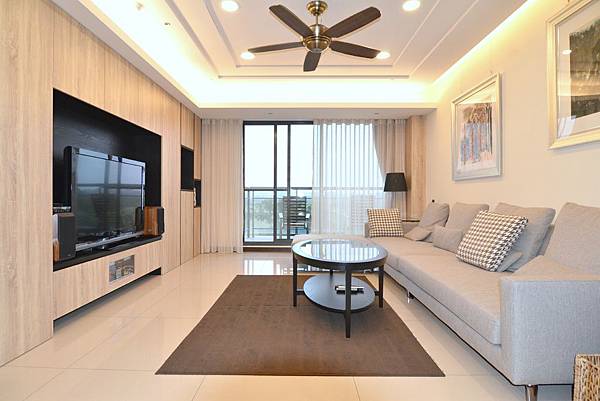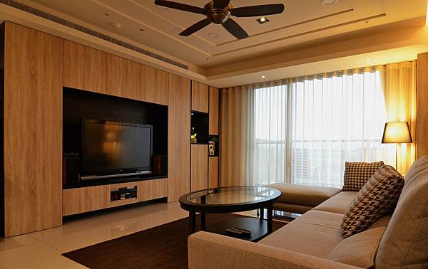 將電視櫃也加入大量收納空間,包含收納高爾夫球具與收藏紅酒空間。