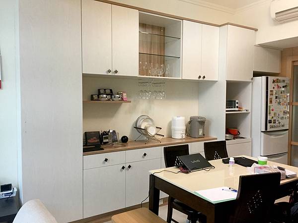電器餐具櫃為裝潢完成退場後,再補增加項目,增加更多收納空間。