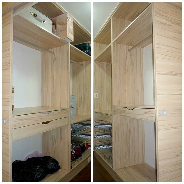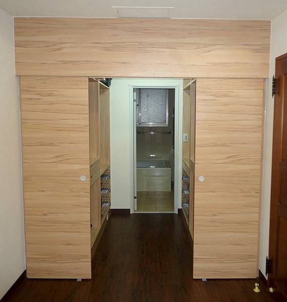 將系統櫃結合木作工法,區隔出更衣室,產生大量衣物儲物空間。