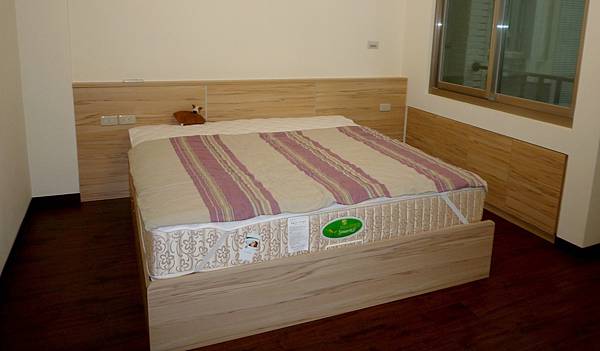 依現場量身訂製系統櫃,將臥室中凹槽空間充分利用,增加收納空間。