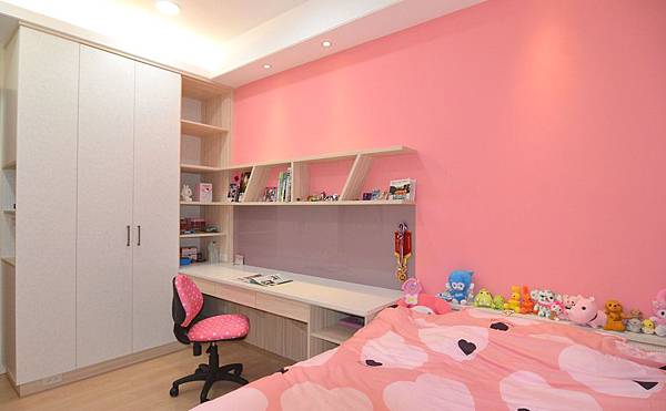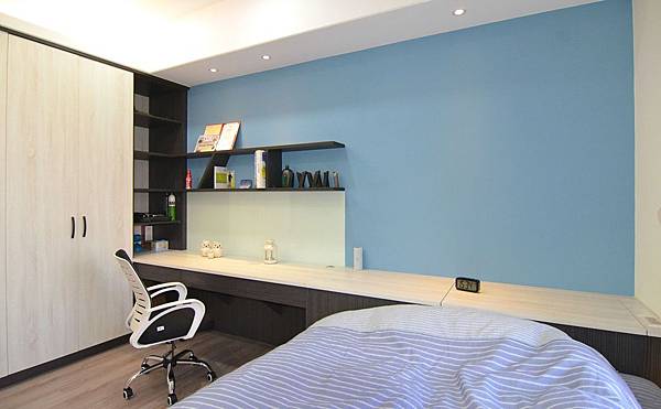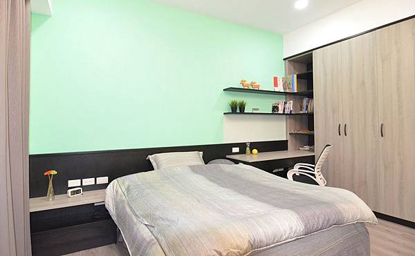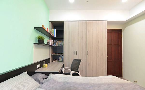 三間次臥房配置相近,單以不同板材佐以不同油漆跳色,便能讓空間呈現完全不同的風樣。