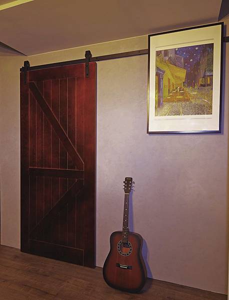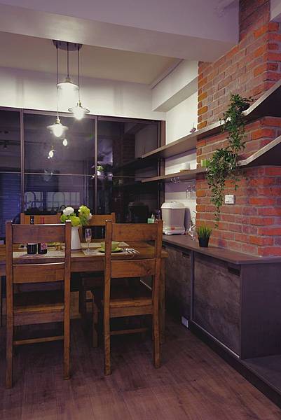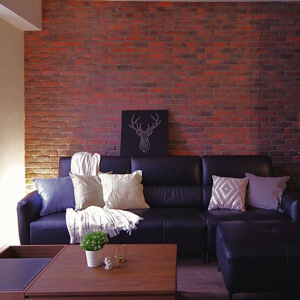 部分牆面利用紅磚文化石拼接, 空隙以水泥漆填補,增加粗曠感。